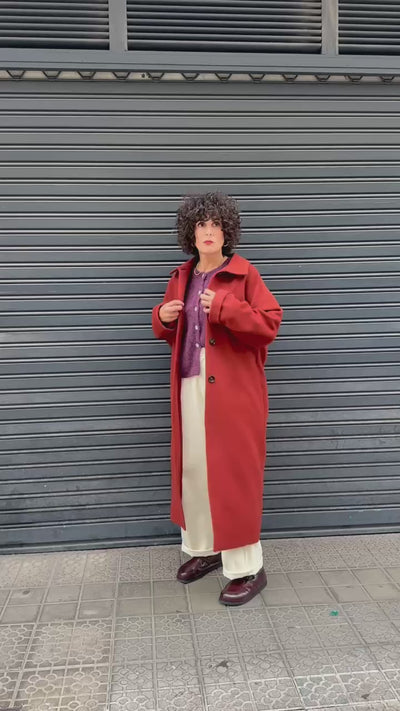 Abrigo recto con solapas de muesca y cierre de botones. Estilo de un solo pecho con bolsillos laterales insertados y abertura en la parte posterior. Forrado.