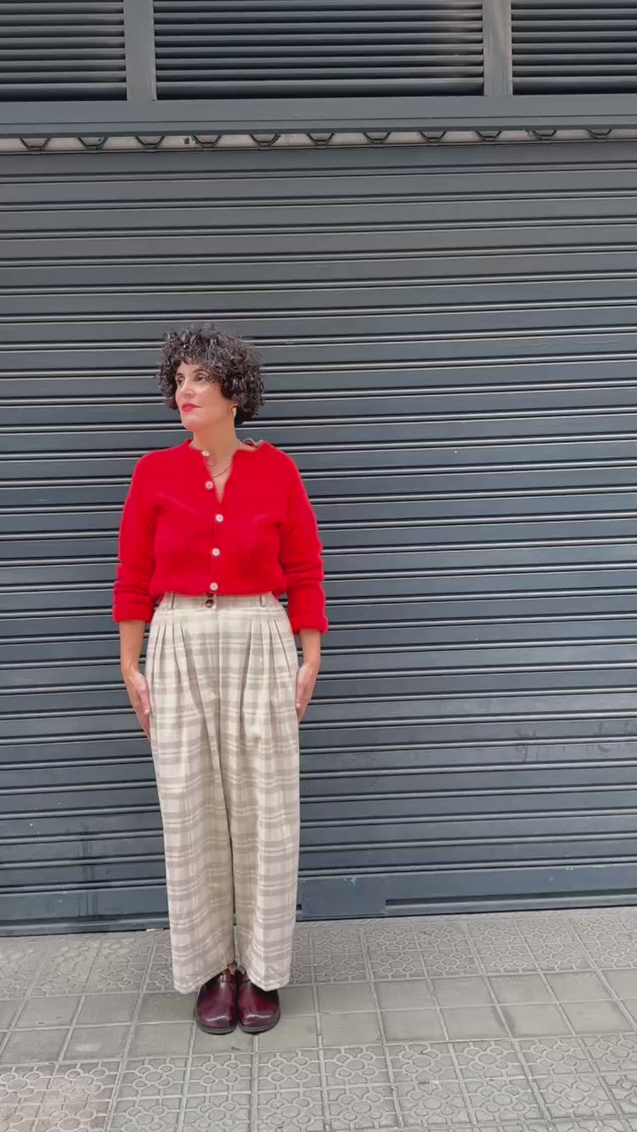 Cárdigan de inspiración vintage, tejido en un suave hilo de mezcla de cachemir y lana merino. Presenta textura de punto bobo y botones blancos en contraste. Su superficie con relieve lo hace cálido y acogedor, ideal como sobreprenda al inicio de la temporada o para abrigarte en los días más fríos del invierno.
