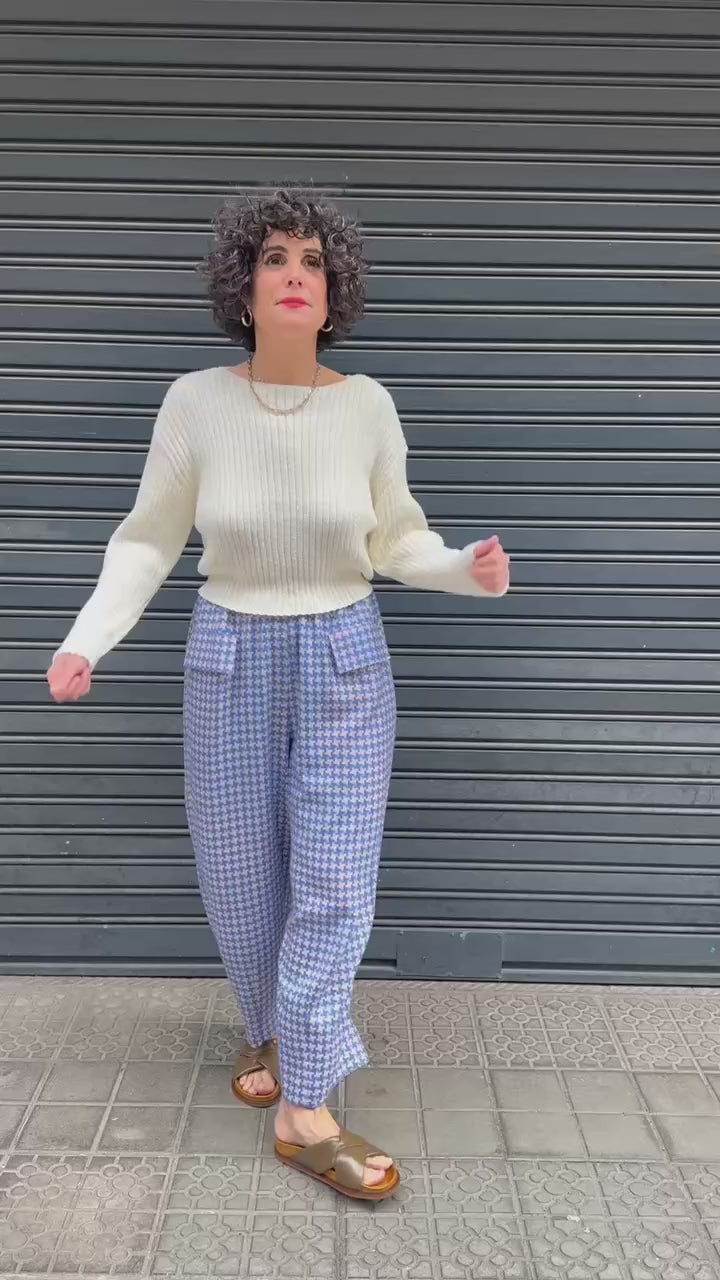 Con cuello barco y manga larga. Confeccionado en punto fino con textura acanalada, suave al tacto y con una caída natural que lo hace muy cómodo. El acabado en bajo y puños aporta estructura sin perder ligereza.